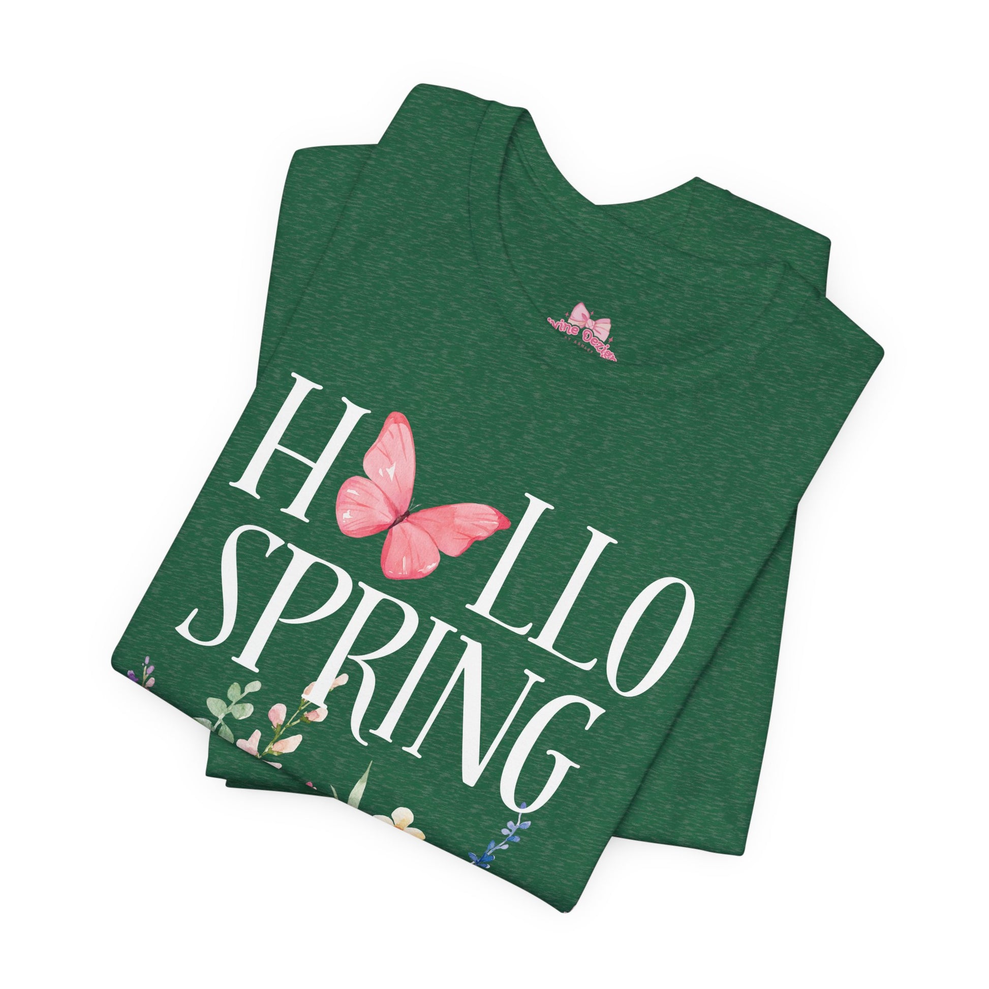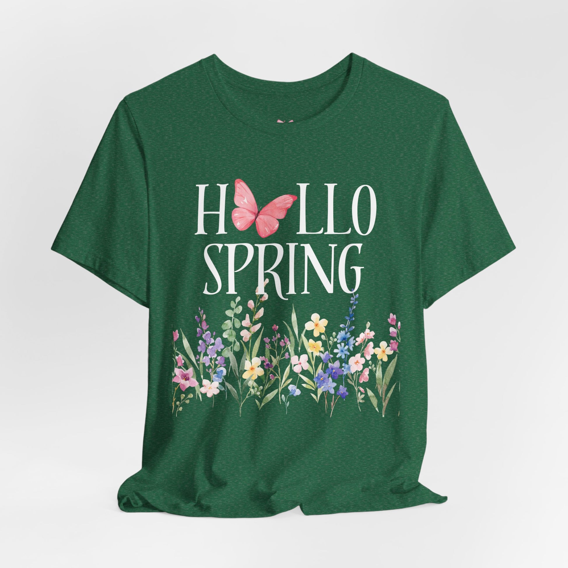 Sun-warm and light, this tee reads like a little celebration of first blooms. Soft, breathable cotton sits close to the body without feeling stiff, while a gentle golden-yellow ground makes the pastel florals and fluttering butterfly sing. The design evokes barefoot mornings in the garden and coffee sipped at a sunny kitchen table. Wear it with relaxed jeans or a linen skirt to carry that early-spring energy through weekend walks, casual brunches, or neighborhood plant swaps. The crew neck and retail fit keep the silhouette neat so the artwork stays the focus.